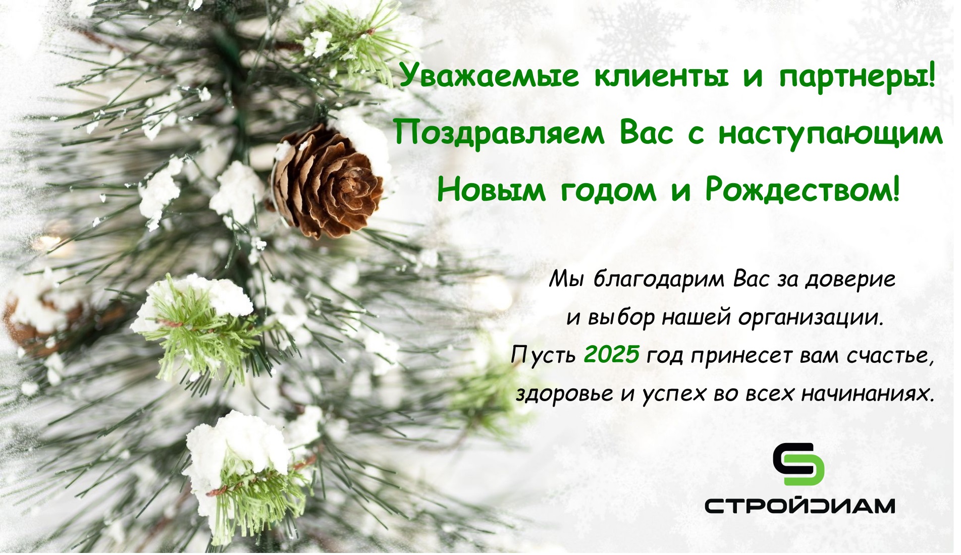 С 29 декабря по 8 января компания «СТРОЙДИАМ» уходит на новогодние каникулы.